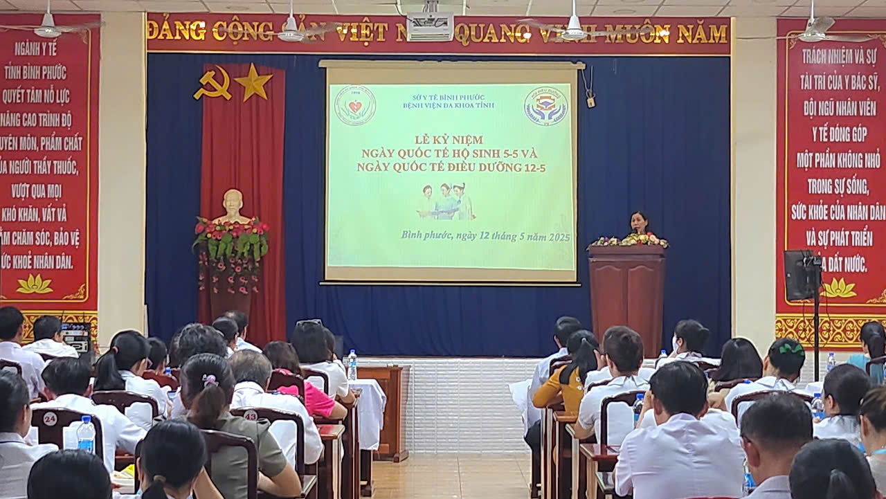Nhằm tôn vinh và ghi nhận những đóng góp to lớn của đội ngũ hộ sinh và điều dưỡng trong sự nghiệp chăm sóc và bảo vệ sức khỏe nhân dân, chiều ngày 12/5, Bệnh viện Đa khoa tỉnh Bình Phước đã long trọng tổ chức buổi lễ chúc mừng Ngày Quốc tế Hộ sinh (5/5) và Ngày Quốc tế Điều dưỡng (12/5).